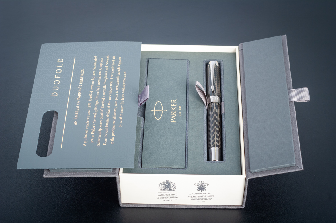 Ручка роллер Parker Duofold Prestige Centennial Black Chevron CT от официального дилера Parker в Реутове. Вы можете дополнительно заказать гравировку, которая подчеркнет Вашу оригинальность и придаст памятность статусному подарку. Все ручки Паркер поставляются в фирменном футляре.